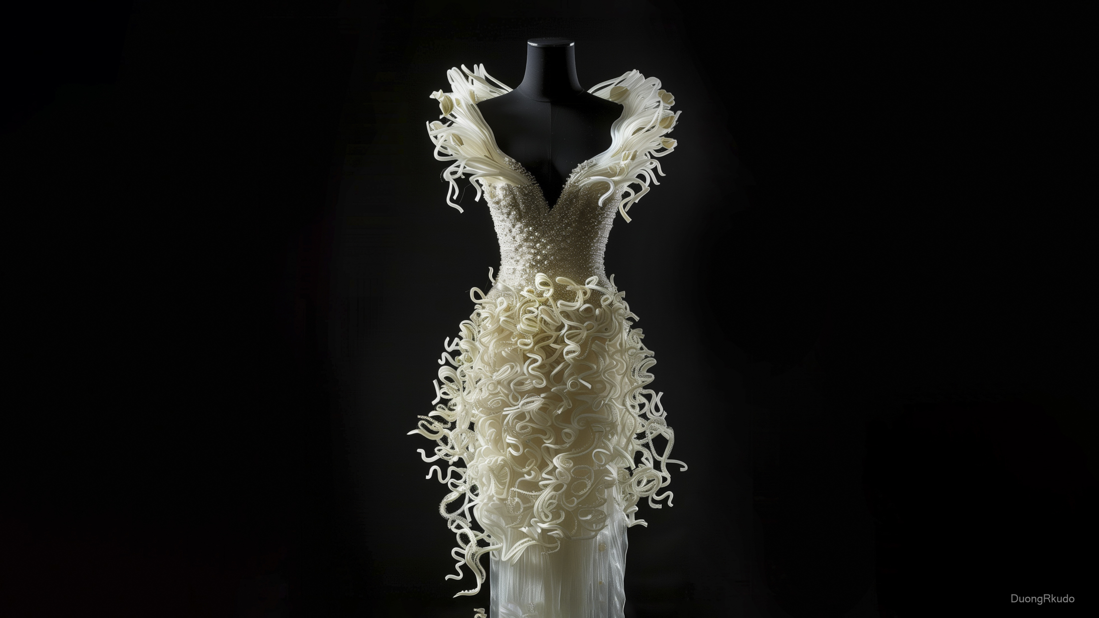 duongrkudo_photo_of_wedding_gown_made_of_noodles_dark_black_bac_e78784f7-396d-48ff-8070-ccc74675021f